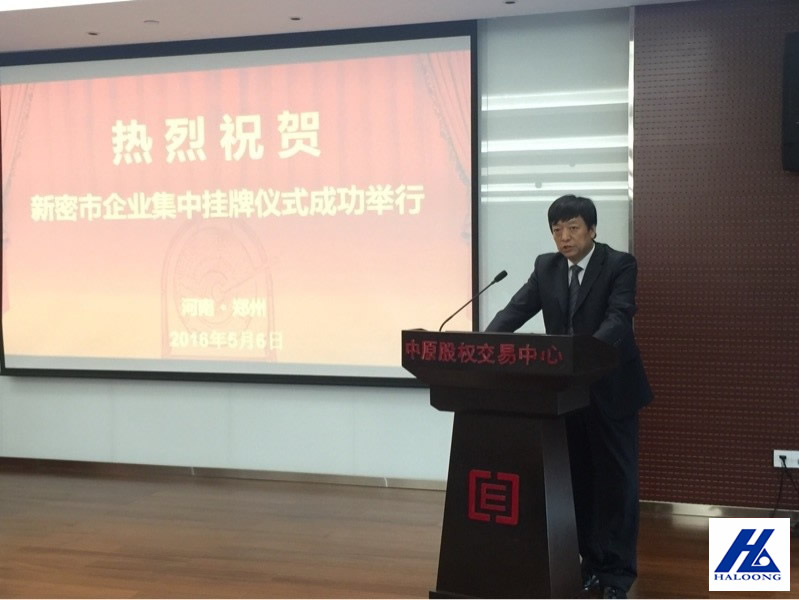 2016年5月6日上午,新密市36家企业集中在中原股权交易中心路演厅举行挂牌仪式,据了解,这是中原股权交易中心成立以来,批次挂牌数量最多的一次,而新密市也是挂牌企业数量较多的县市之一。